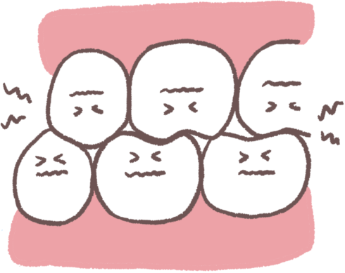 力の問題の原因には歯ぎしり、無意識に常に噛んでいる、歯並びが悪い、片側だけで食べている、歯や被せ物の高さや形が合っていないなど原因は様々です。